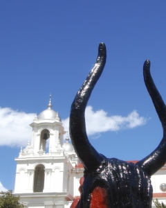 Mientras tanto en el distrito Santo Domingo resaltan dos capturas fotográficas, una donde se destaca el alto índice de desarrollo social a través de la educación y otra que refleja la dicotomía entre el bien y el mal retratando uno de los emblemas importantes de este cantón como lo es la Basílica de Santo Domingo junto a una mascarada del diablo, actividad tradicional que identifica parte de su cultura.