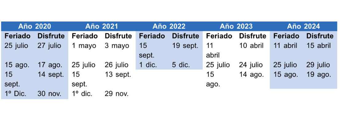 De acuerdo con la modificación los feriados se trasladan al lunes siguiente o al anterior quedando de esta manera: