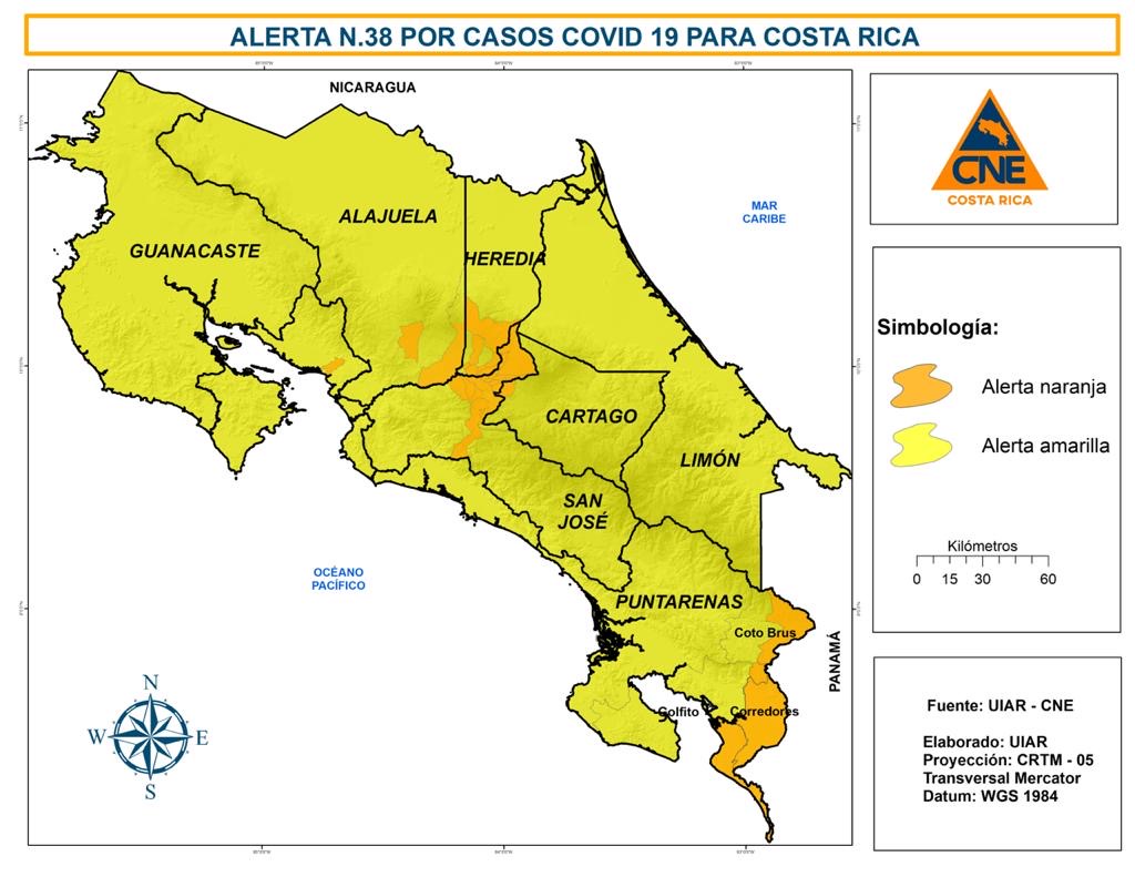De esta manera, según destacan las autoridades de la Comisión Nacional de Emergencias, en la provincia de Heredia estarán en  alerta naranja 6 de los 10 cantones: Heredia, Barva, Santo Domingo, San Isidro, Flores y San Pablo.