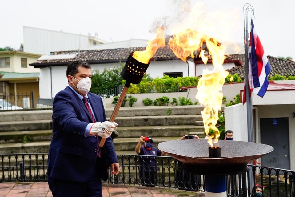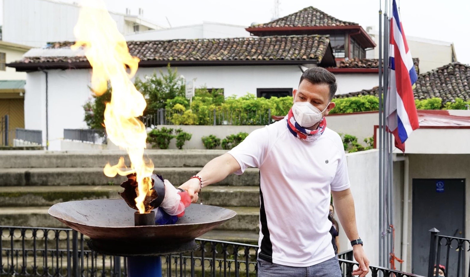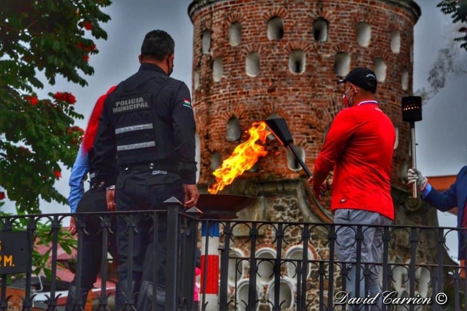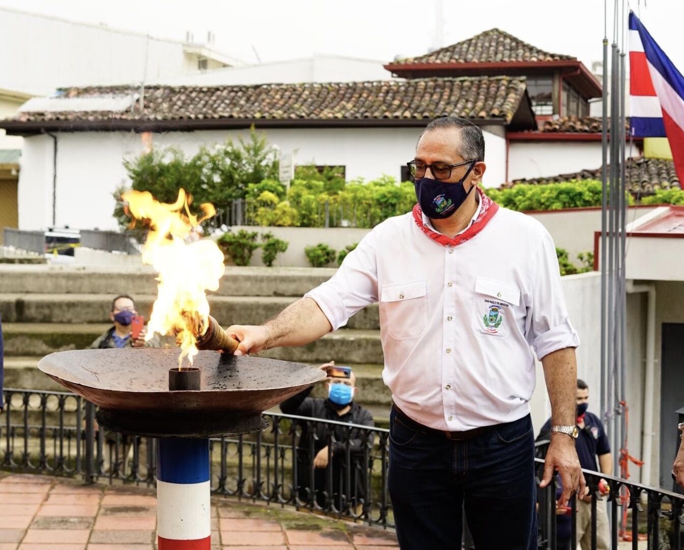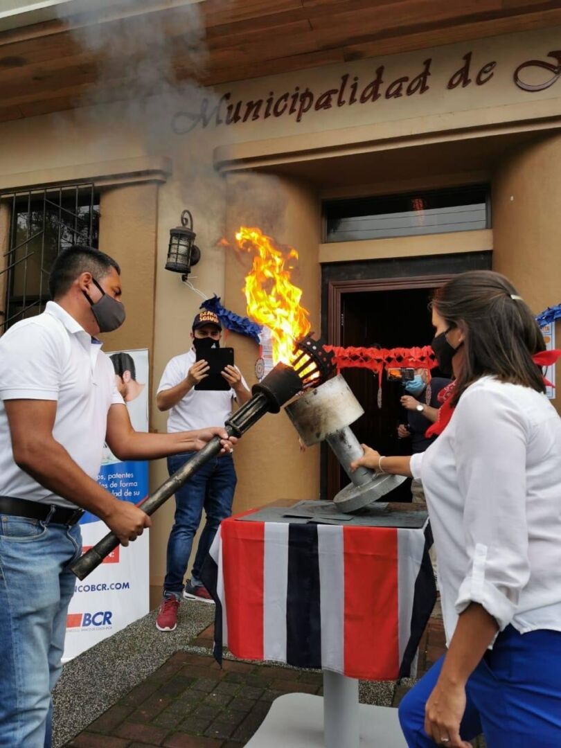 Mauricio Chacón, Presidente Municipal de Heredia tomó el fuego de la libertad de la Municipalidad de Flores y lo llevó al Anfiteatro del Fortín, lugar de encuentro en el que distintas autoridades locales de la provincia de Heredia encendieron sus antorchas para hacer el respectivo recorrido en los distintos cantones.