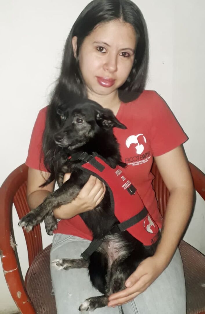 “Empecé a notar que ella era muy dulce, veía a un chiquito y se le veía una mirada de ternura, se dejaba tocar la cola, las orejas, las almohadillas de la patitas, lo menciono porque no ha todos los perros les gusta o toleran que le toquen esas partes. Como soy voluntaria en ACOTEAMA, en donde soy encargada de terapia física, pensé que tal vez Muni tendría el perfil para apoyar en las terapias” recordó Cubero.