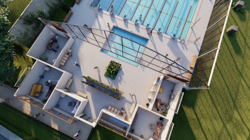 Con el propósito de potenciar la salud y calidad de vida de la comunidad, el Centro Acuático contará con una piscina semiolímpica reglamentaria de 25 metros de largo a ocho carriles, y una piscina pedagógica para la familiarización acuática de niños y niñas con edades entre los 5 y 7 años.