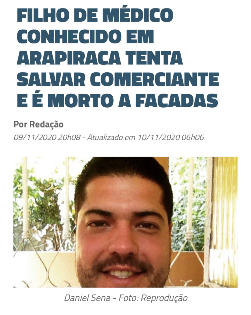 Medios de comunicación de Brasil destacan el homicidio de Daniel Piñar Sena, ocurrido ayer en Mercedes Norte de Heredia. El joven de 33 años de edad era oriundo de Arapiraca, un municipio brasileño del estado de Alagoas.