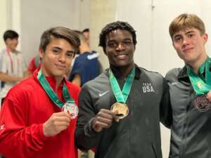Ariel Villalobos (plata), junto a los estadounidenses Frederick Richard (oro) y Cole Partridge (bronce).