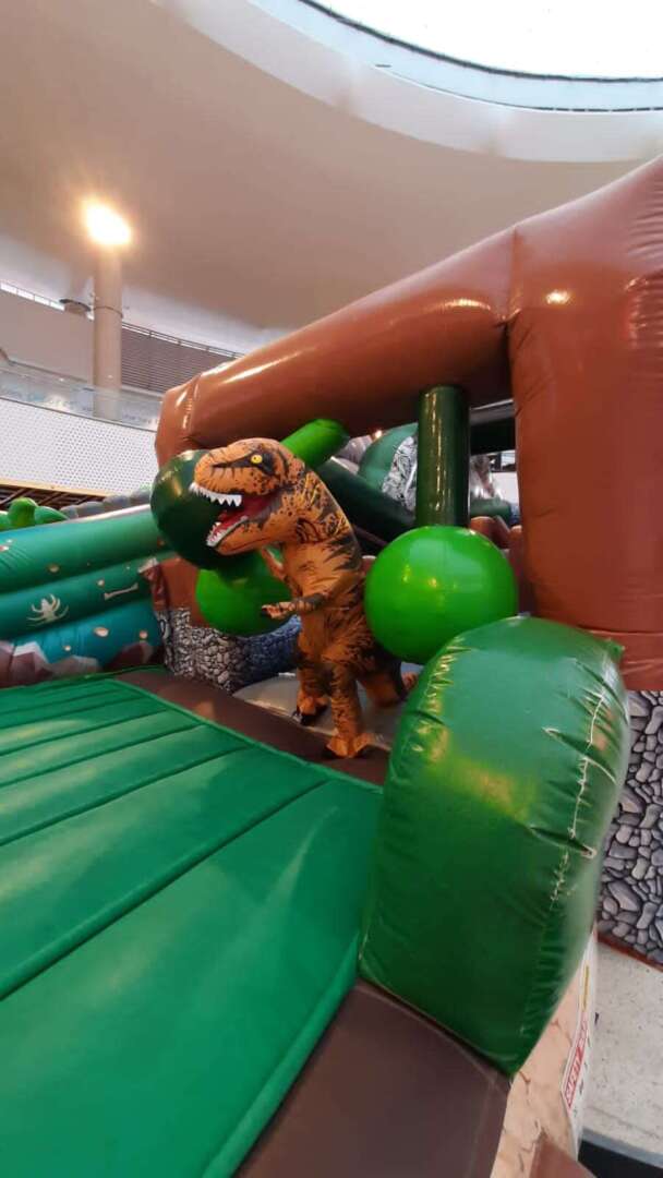 Para encontrar quién será el dinosaurio más rápido, los doce competidores que participarán en este evento, deberán recorrer aproximadamente 200 metros con trajes inflables de dinosaurios.