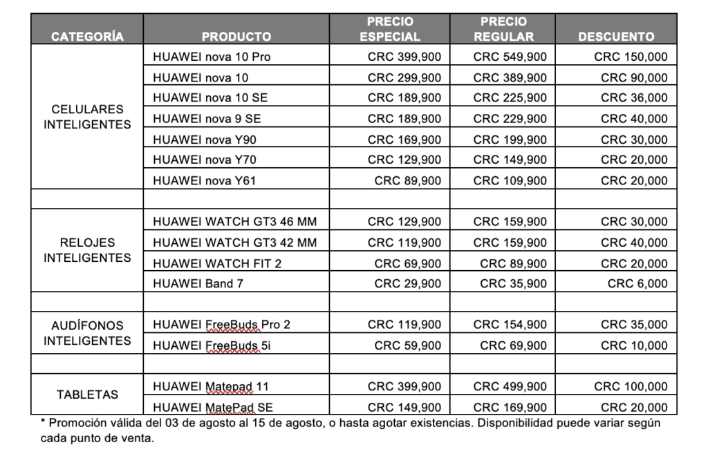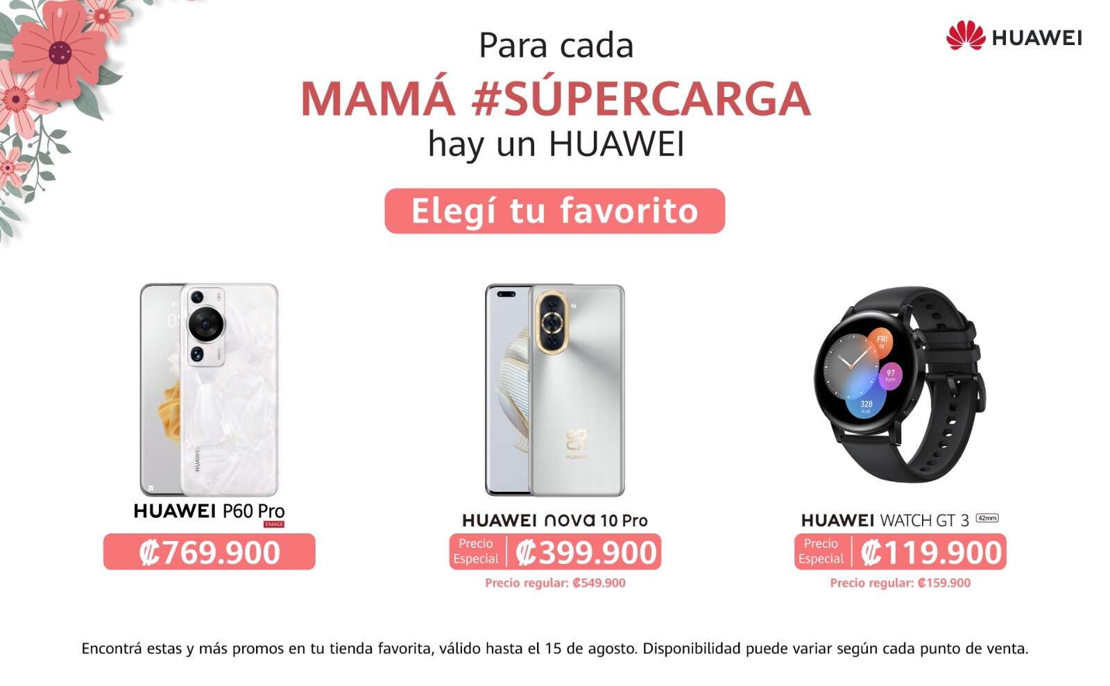 Además del P60 Pro, Huawei ofrece productos seleccionados, perfectos para regalar. Hasta el 15 de agosto, aproveche las variadas promociones de precios y planes especiales o regalías. La disponibilidad de la promoción puede variar en cada punto de venta. Visite tiendas Huawei, cadenas de electrodomésticos, kölbi y Claro y aproveche.