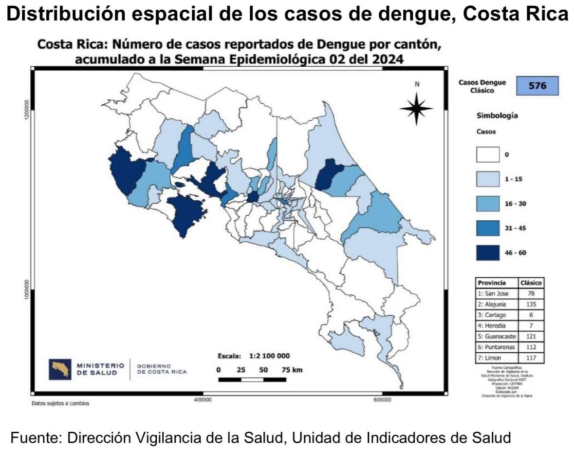 Por otra parte, nuestro país registra 576 casos de dengue, de los cuales 7 pertenecen a la provincia de las flores. Alajuela se posiciona en el primer lugar con 135, seguido de Guanacaste con 121 y Limón con 117.