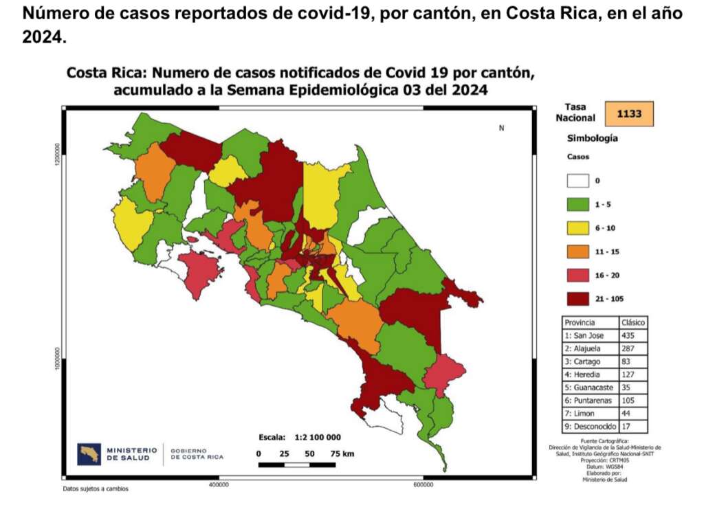 “Según el Ministerio de Salud los casos de COVI-19 subieron en un 39% para la segunda semana de enero, alcanzando 80 hospitalizaciones y 14 muertes. Heredia es la tercer provincia del país con mayor cantidad de casos, alcanzando 127, en primer lugar se ubica San José con 435 casos, seguido de Alajuela con 287; en total el país contabiliza 1133 casos.