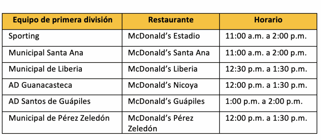 Los equipos de primera división del fútbol nacional también se han sumado a esta gran afición. El equipo de Sporting, por ejemplo, estará en el restaurante de McDonald’s Sabana Estadio desde las 11:00 a.m., en compañía de figuras nacionales como Jair Cruz, Keyla Sánchez, Ericka Morera y el creador de contenido Churry.