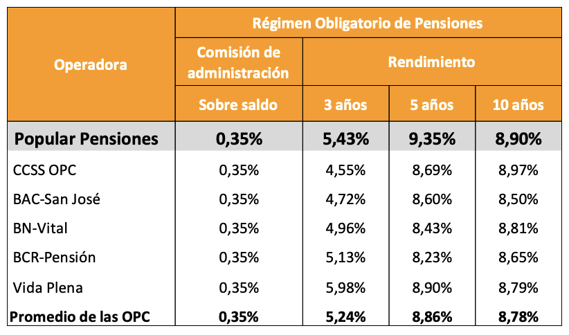 Datos de la Superintendencia de Pensiones (SUPEN) publicados a octubre de este año constatan que el ROP de Popular Pensiones destaca con rentabilidades superiores al promedio de la industria.