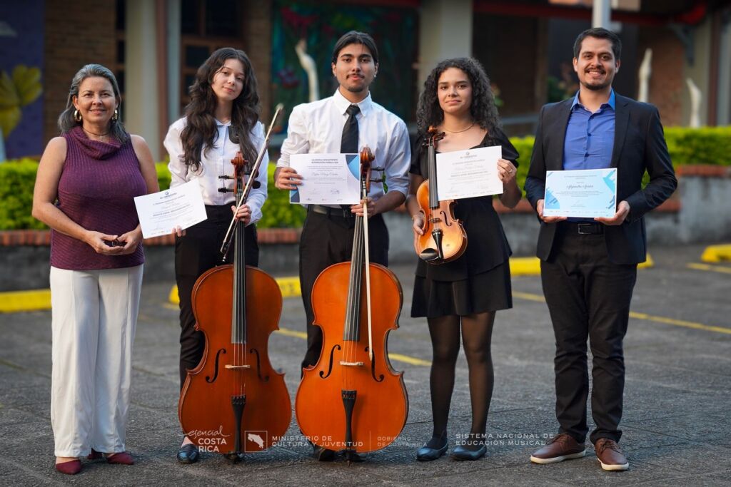 Orquesta Juvenil Iberoamericana. En el evento del pasado 18 de enero de 2025, se entregaron también los certificados de participación en la Orquesta Juvenil Iberoamericana a tres destacados miembros del SiNEM: Raquel Monge, SiNEM Frailes; María Paulina Méndez, SiNEM Coto Brus, así como al profesor Alejandro Acuña, SiNEM Grecia; ellos formaron parte de este prestigioso proyecto internacional, reafirmando el compromiso del SiNEM con la formación y proyección de sus estudiantes.