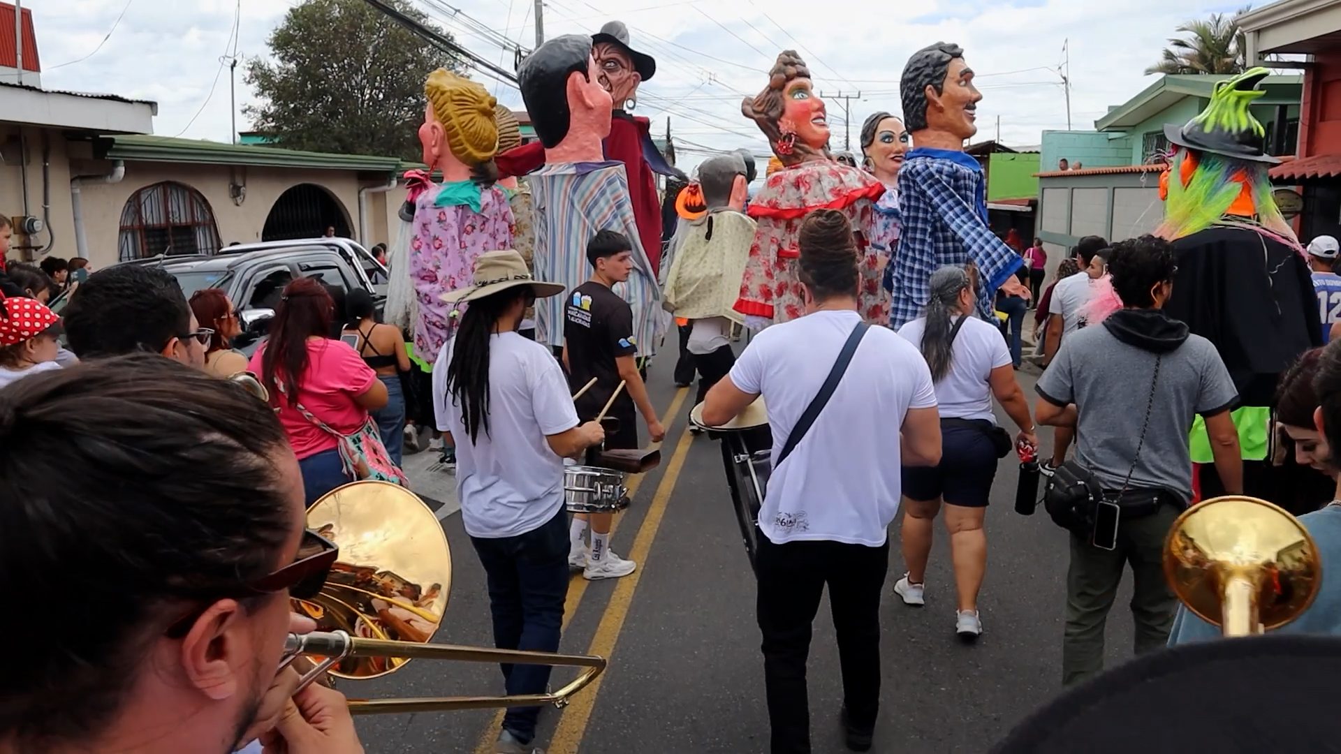 En 2022 se logró hacer una nueva máscara siguiendo esa línea, y un año más tarde, nos dimos a la tarea, por una curiosidad, de crear los gigantes más grandes de Costa Rica, o por lo menos los más altos del país o de la región. Estos miden, ya con sus estructuras, cinco metros, esto nos hace fortalecer al grupo y nos permite tener una participación más activa.