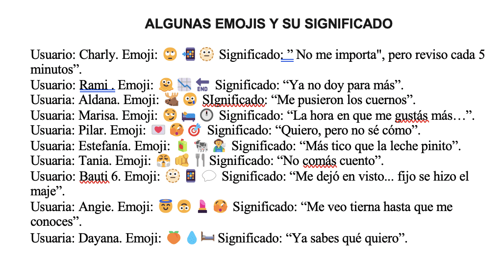 Los emojis son imágenes o íconos que representan emociones, objetos, ideas y estados de ánimo. Forman parte del lenguaje que utilizan las personas adolescentes a través de las nuevas tecnologías como los celulares, tabletas, redes sociales, que es inspirado por ellas mismas y con un significado conocido por el grupo.