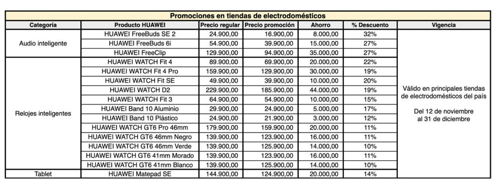 Ofertas destacadas en tiendas de electrodomésticos: válido hasta el 31 de diciembre. HUAWEI presenta rebajas ideales para quienes quieren actualizar sus dispositivos sin sacrificar el presupuesto. Entre las opciones más llamativas destacan: