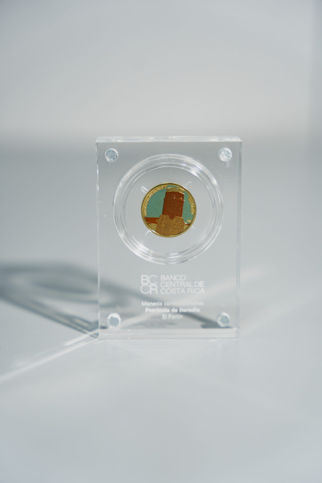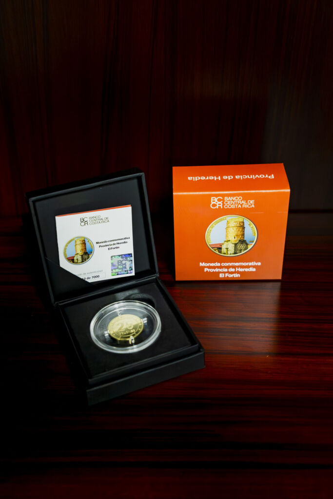 El diseño de la moneda rinde homenaje a El Fortín, uno de los símbolos más reconocidos de la provincia de Heredia y parte integral de su identidad histórica.