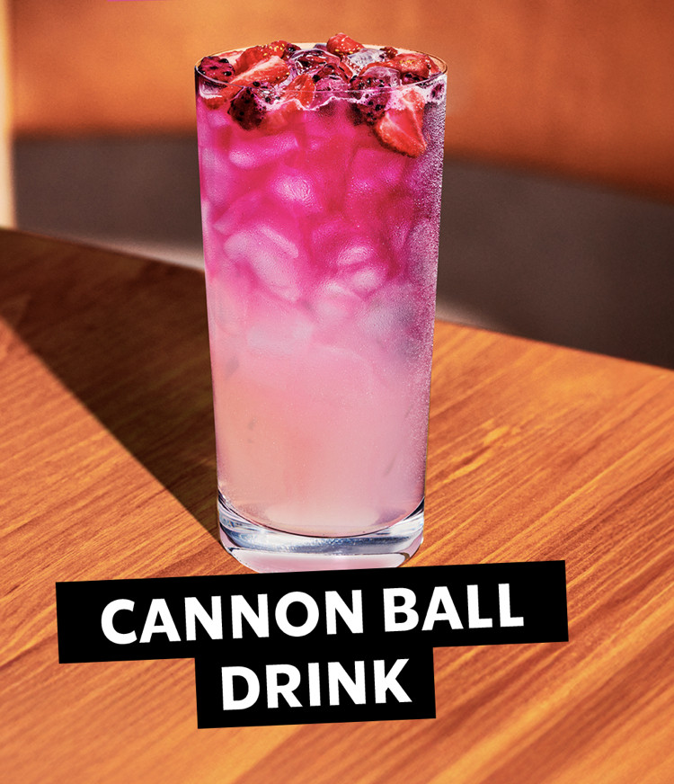 Creada por baristas Starbucks para los fans, la bebida Cannon Ball es una limonada intensa y ligeramente ácida elaborada con los Starbucks® Strawberry Açaí y Mango Dragonfruit Refreshers, servida bien fría y coronada con inclusiones de fruta en cascada. Inspirada en el icónico Cannon Ball Challenge de Beast Games temporada 2, esta vibrante bebida ofrece una explosión refrescante de sabor y un gran impacto visual. Disponible por tiempo limitado, invita a los clientes a lanzarse y disfrutar el momento mientras dure.