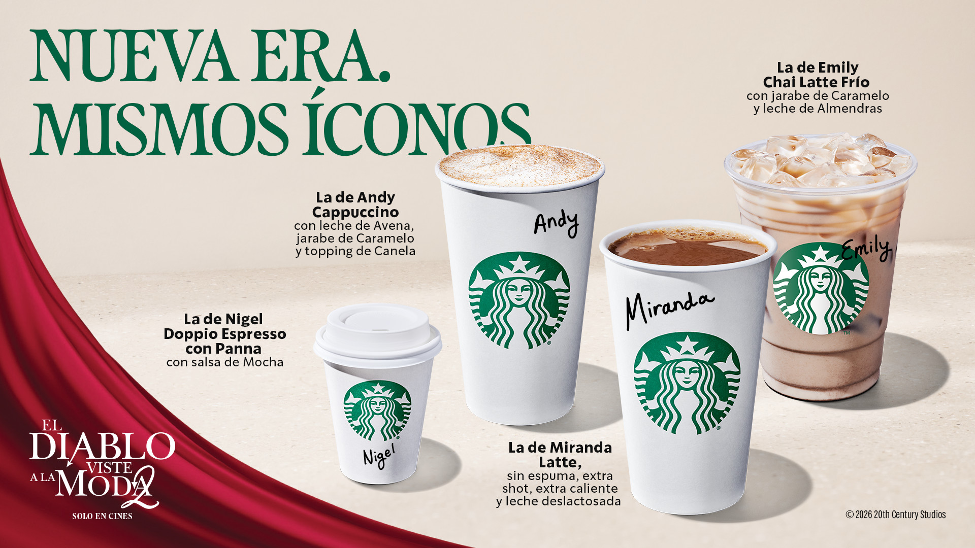 “Desde el primer sorbo hasta la escena final, Starbucks invita a los clientes a sumarse al espíritu de la moda, pedir su bebida favorita y vivir el evento de moda más importante del año: ‘Devil Wears Prada 2’, en cines el 30 de abril”, concluyó Silvoy.