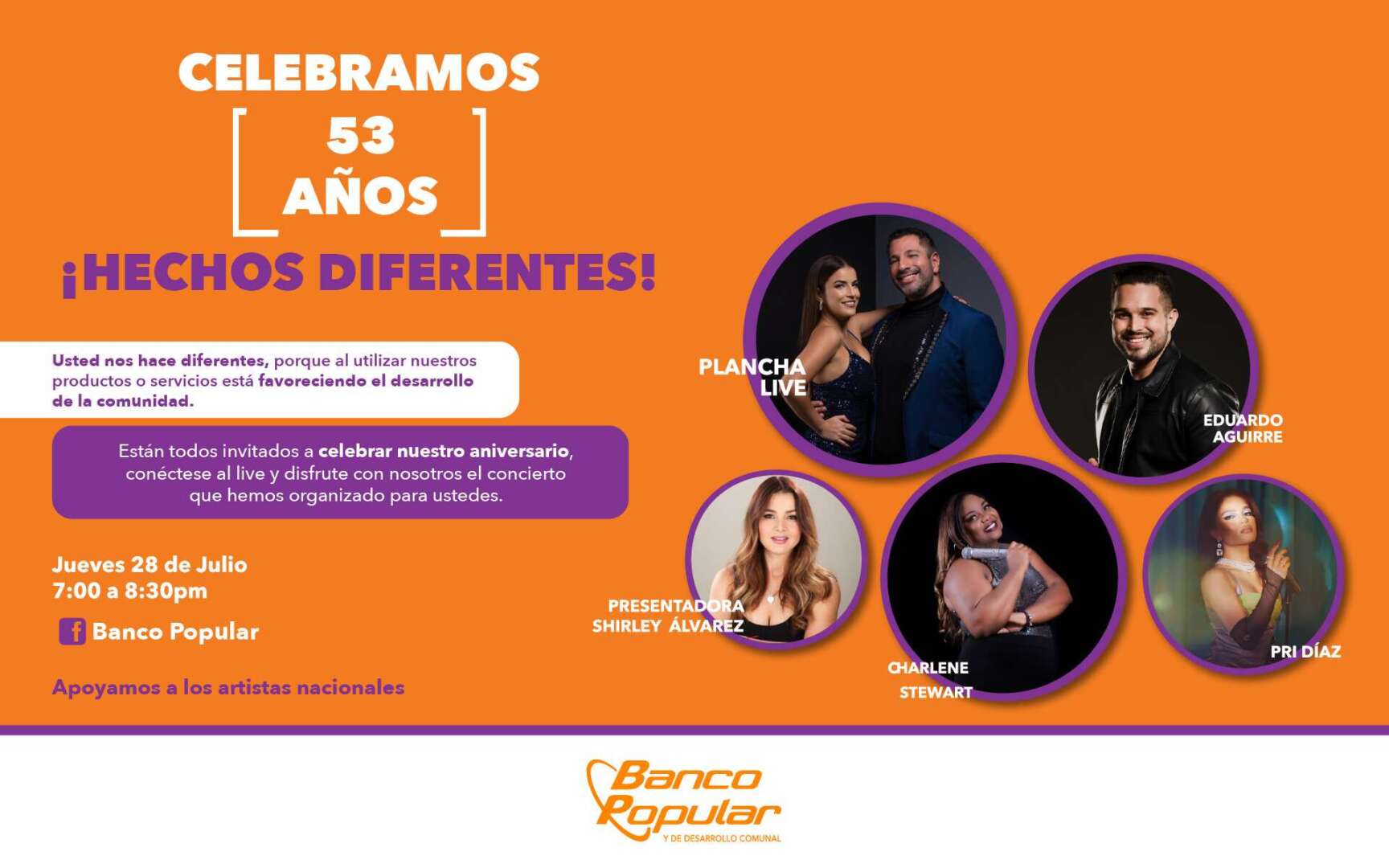 Con motivo de la celebración de su 53 aniversario, el Banco Popular y de Desarrollo Comunal invita a todos sus clientes y a la población en general a disfrutar de un espectáculo de gran calidad con el concierto virtual que realizaráhoy jueves 28 de julio, El concierto “Celebramos 53 años ¡Hechos diferentes!” es completamente gratuito y [...]